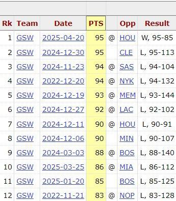 勇士过去3年首次在得分不超过95分情况下赢球 本场前0胜11负